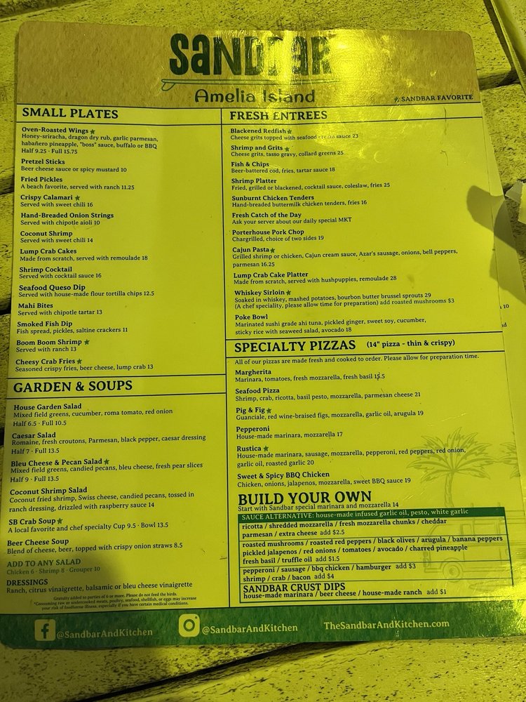 Welcome to Sandbar Amelia Island, a vibrant gem nestled along the stunning coastline of Fernandina Beach, Florida. This casual, tourist-friendly eatery specializes in American-style pizza and beach-inspired seafood dishes, making it an ideal spot for both locals and visitors looking to indulge in delicious fare while soaking up the sun.